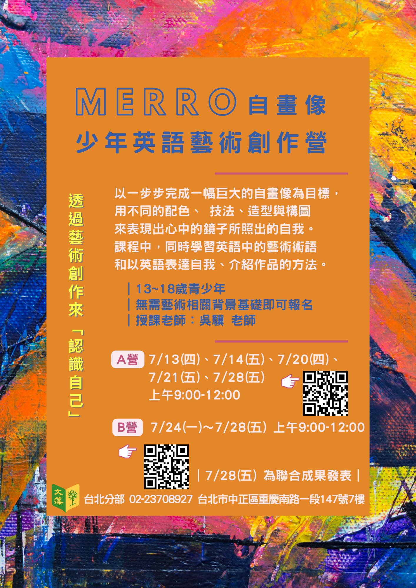 一、活動日期:民國112年7月24日(星期一)至112年7月28日(星 期五),上午9時至12時,為期五天。