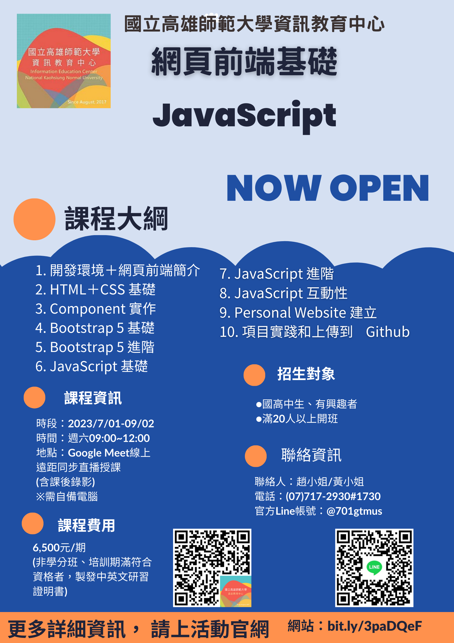(二)JavaScript 網頁前端基礎課程【國高中線上班】。