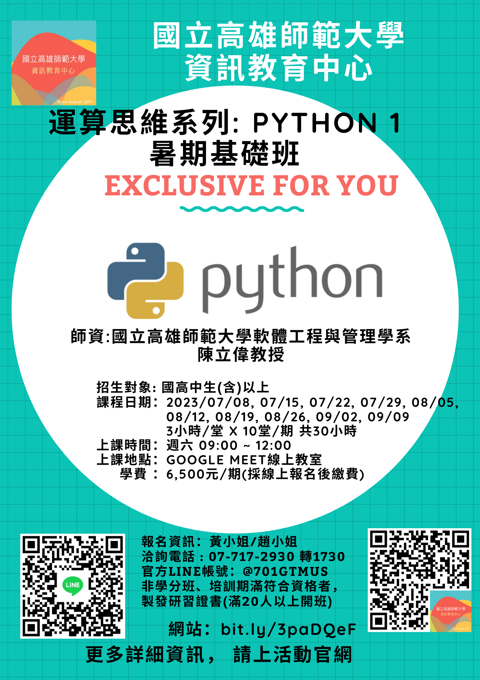 (一)運算思維系列:Python 程式語言基礎班【國高中線上班】。