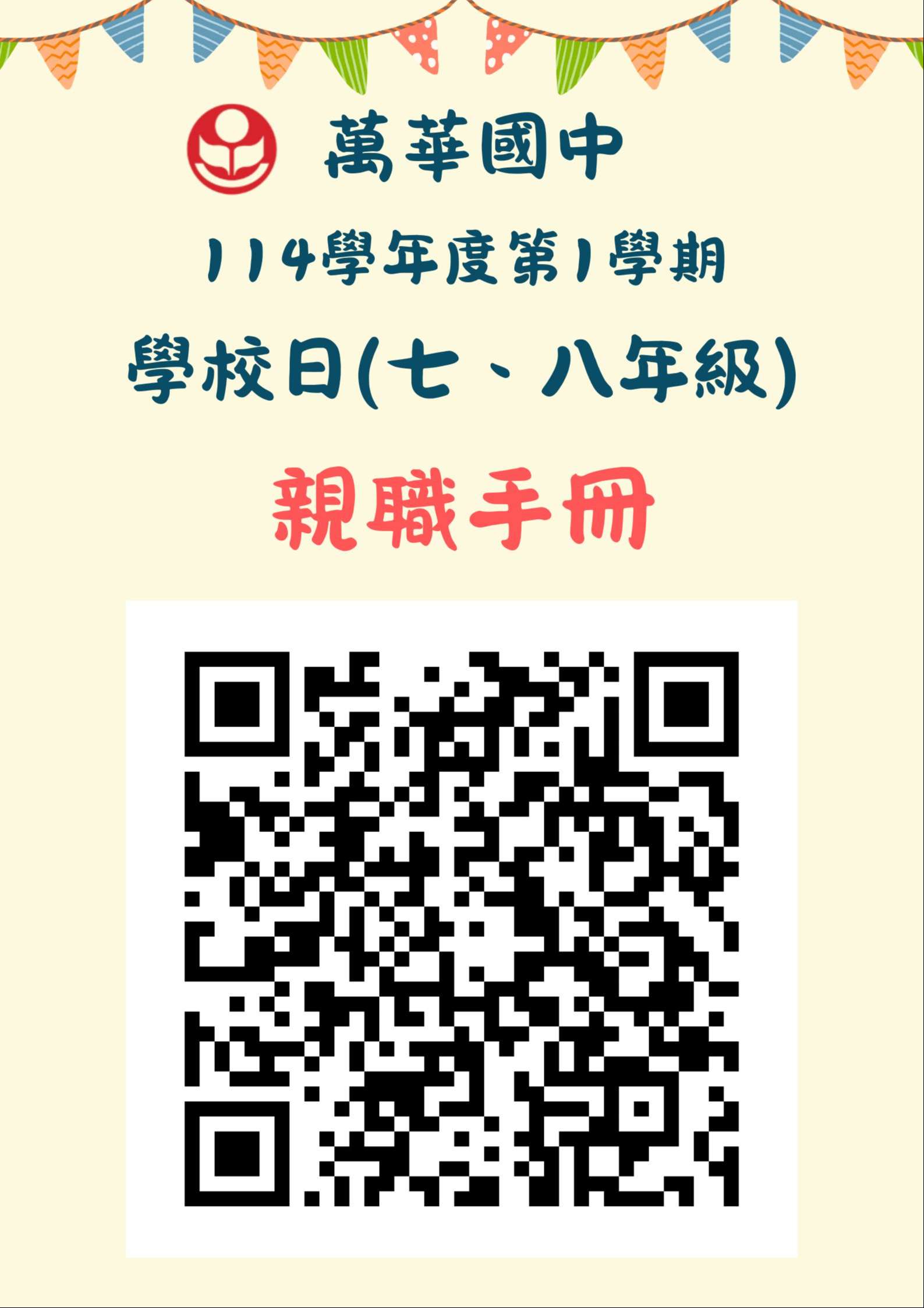您好!為使家長瞭解本校的教育措施及教學活動重點,同時促成親師溝通與合作,本校特於114年9月12日(五)18:30~20:20舉辦七八年級學校日活動